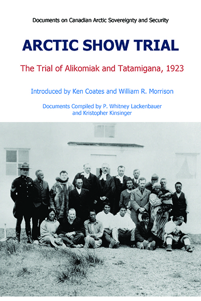 The first volume, on the trials and subsequent executions of Tatamigana and his young nephew Alikomiak for the murders of RCMP Cpl. W. A. Doak and trader Otto Binder in 1922 at Tree River, was published in 2017 as Arctic Show Trial: The Trial of Alikomiak and Tatamigana, compiled by P. Whitney Lackenbauer and Kristopher Kinsinger, and introduced by Ken Coates and William R. Morrison. Alikomiak and Tatamigana were the first Inuit tried and executed for murder under Canadian law. The case was the third in a series of killings of outsiders by Inuit in the western Arctic which had begun in 1912; the first two (the subject of future volumes listed below) had resulted in more lenient treatment. The trial of these two men, which took place in the summer of 1923, was in the nature of a show trial, designed by the federal government to show the Inuit that the authorities would no longer tolerate such acts of violence. It was also meant to be a demonstration to the world of Canada’s sovereign rights in the Arctic, rights which had an uncertain foundation in international law. The conviction and execution of Alikomiak and Tatamigana caused controversy at the time; sentiment for clemency was based on claims (made then and subsequently) that Inuit were simple and primitive, and did not understand the principle of execution for murder. The sentencing of Alikomiak and Tatamigana was entirely in keeping with Inuit custom. Furthermore, alternatives to execution suggested by those with better knowledge of the North were in some ways even harsher than capital punishment. Extracts from the capital case file and the transcripts of the trial make these points clear.